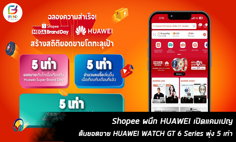 Shopee ผนึก HUAWEI เปิดแคมเปญ ดันยอดขาย HUAWEI WATCH GT 6 Series พุ่ง 5 เท่า
