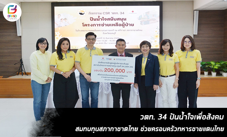 วตท. 34 ปันน้ำใจเพื่อสังคม สมทบทุนสภากาชาดไทย ช่วยครอบครัวทหารชายแดนไทย