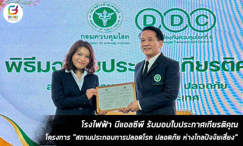 โรงไฟฟ้า บีแอลซีพี รับมอบใบประกาศเกียรติคุณโครงการ “สถานประกอบการปลอดโรค ปลอดภัย ห่างไกลปัจจัยเสี่ยง”