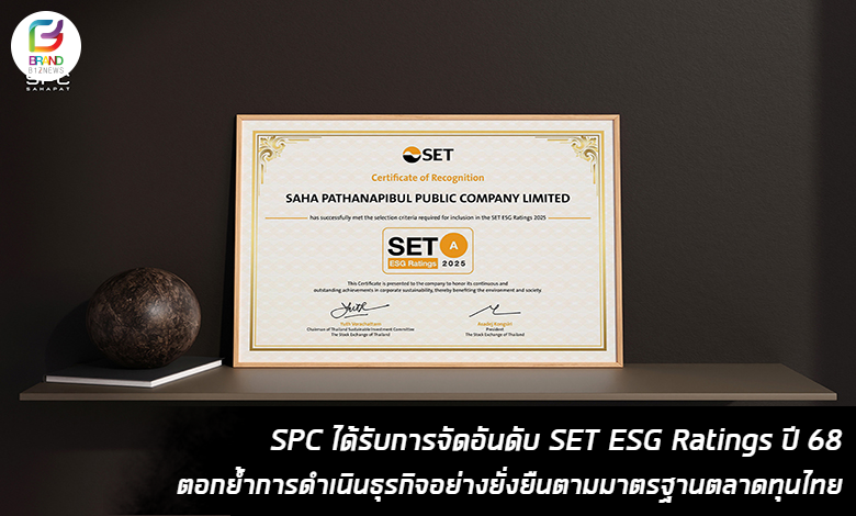 SPC ได้รับการจัดอันดับ SET ESG Ratings ปี 68 ตอกย้ำการดำเนินธุรกิจอย่างยั่งยืนตามมาตรฐานตลาดทุนไทย