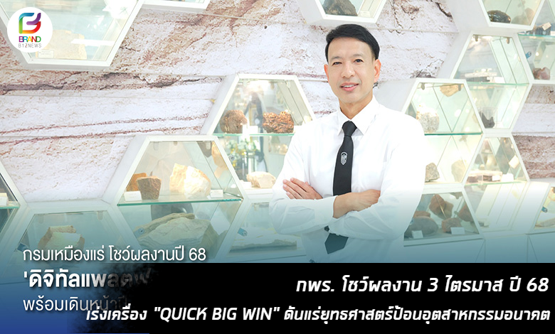 กพร. โชว์ผลงาน 3 ไตรมาส ปี 68 เร่งเครื่อง “QUICK BIG WIN” ดันแร่ยุทธศาสตร์ป้อนอุตสาหกรรมอนาคต