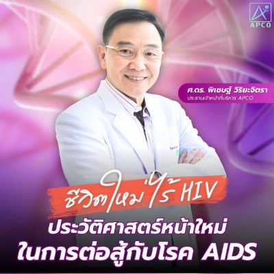 บริษัท เอเชียน ไฟย์โตซูติคอลส์ จำกัด (มหาชน) หรือ APCO สร้างประวัติศาสตร์หน้าใหม่เป็นก้าวสำคัญในการต่อสู้กับโรคที่ทั่วโลกเฝ้าจับตามานานกว่า 40 ปี ด้วยความสำเร็จของงานวิจัย “ByeByeHIV” ที่ช่วยให้ผู้ติดเชื้อ HIV ครบ 100 ราย หลุดพ้นจากภาวะติดเชื้อ นับเป็นครั้งแรกของโลก ที่มีการยืนยันผลลัพธ์ดังกล่าวด้วยภูมิคุ้มกันบำบัดจากธรรมชาติ