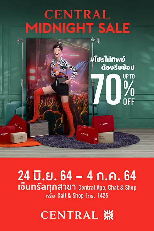 ห้างเซ็นทรัล ตอกย้ำผู้นำมิดไนท์เซล จัดแคมเปญ “Central Midnight Sale” (เซ็นทรัล มิดไนท์เซล) กับคอนเซ็ปต์ใหม่ “โปรไม่ทิพย์ ต้องรีบช้อป” วันที่ 24 มิ.ย. - 4 ก.ค. 2564 ที่ห้างเซ็นทรัลทุกสาขา และทุกช่องทางออมนิชาแนล เอาใจลูกค้าให้ช้อปได้ตลอด 24 ชม. กับโปรฯ แรงทั้งหน้าร้าน และหน้าเว็บ