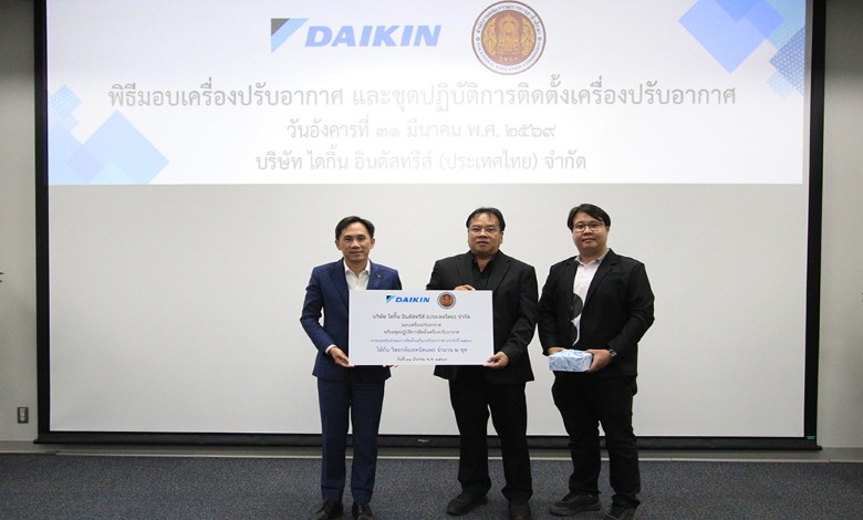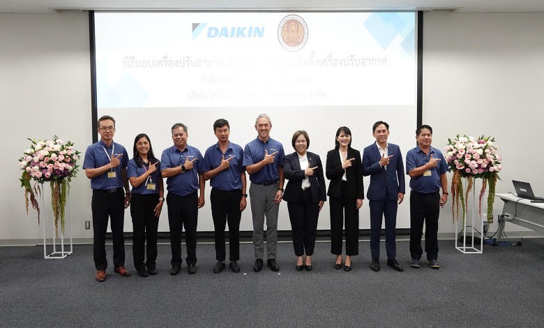 บริษัท ไดกิ้น อินดัสทรีส์ (ประเทศไทย) จำกัด และ บริษัท สยามไดกิ้นเซลส์ จำกัด ตอกย้ำความร่วมมือกับสำนักงานคณะกรรมการการอาชีวศึกษา (สอศ.) เดินหน้าสร้างอนาคตช่างปรับอากาศไทย ส่งมอบเครื่องปรับอากาศและชุดปฏิบัติการติดตั้งรวม 42 ชุด ให้แก่ 15 สถานศึกษาทั่วประเทศ ขับเคลื่อนวิสัยทัศน์ส่งเสริมเทคโนโลยีการเรียนการสอน เปิดโอกาสให้นักศึกษาลงมือปฏิบัติกับอุปกรณ์จริง มุ่งลดการขาดแคลนแรงงานฝีมือ พร้อมยกระดับทักษะฝีมือแรงงานไทยสู่มาตรฐานสากล