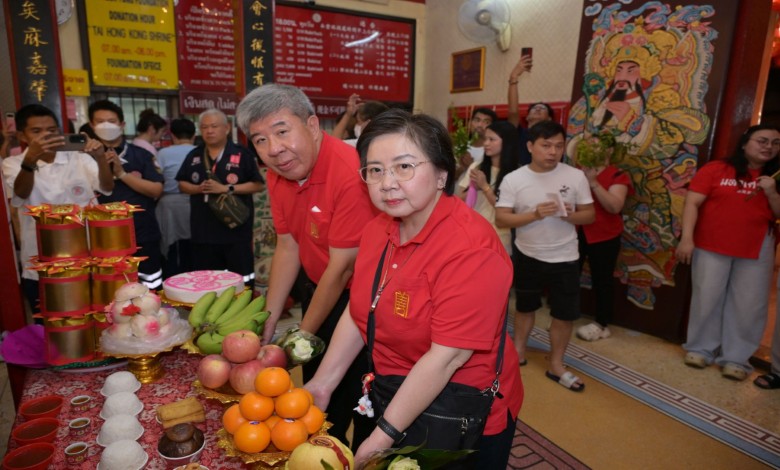 มูลนิธิป่อเต็กตึ๊ง นำโดย นายสัก กอแสงเรือง รองประธานกรรมการ นายจารุรัตน์ คุณัตถานนท์ กรรมการและเหรัญญิก นายสุรพงษ์ เตชะหรูวิจิตร กรรมการและรองเลขาธิการ นายนิพนธ์ ลีละศิธร กรรมการ และนางชุติมา ตันติศิริวัฒน์ ผู้ช่วยกรรมการ พร้อมด้วย คณะผู้บริหาร อาสาสมัคร รวมทั้งศิษยานุศิษย์ และสาธุชนจำนวนมาก ร่วมในพิธีเวียนธูปศักดิ์สิทธิ์ เพื่อตั้งจิตอธิษฐานเทพยดาฟ้าดิน (เจ้าแห่งสวรรค์) และหลวงปู่ไต้ฮง ช่วยดลบันดาลให้ประสบโชคดีตลอดปีใหม่ พร้อมกับสรรเสริญและขอพรจากเทพเจ้า ให้ตนเอง และครอบครัว รวมถึงประเทศชาติ อยู่เย็นเป็นสุข ปราศจากโรคภัย เฮงๆ ตลอดปีมะเมีย โดยมี คณะสงฆ์ฝ่ายอนัมนิกาย วัดอุภัยราชบำรุง เป็นผู้ประกอบพิธีสงฆ์ ณ ศาลเจ้าไต้ฮงกง มูลนิธิป่อเต็กตึ๊ง พลับพลาไชย
