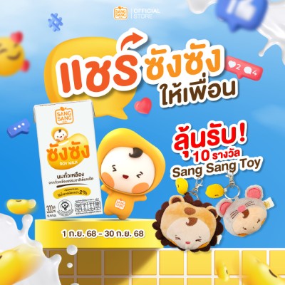 พร้อมกันนี้ ยังชวนทุกคนมาร่วมส่งต่อสุขภาพดีให้เพื่อนๆ ด้วยการชวนดื่มซังซังลุ้นรับ SangSangToy จำนวน 10 รางวัล เพียงแชร์โพสต์นี้แบบสาธารณะแท็กเพื่อนในแคปชั่น แนะนำซังซังและชวนดื่มในแบบของคุณ ใส่แฮชแท็ก #ดื่มซังซัง #นมถั่วเหลือง #ซังซัง #SangSang #Soymilk จากนั้นแคปโพสต์มาคอมเมนต์ยืนยันใต้กิจกรรมเพื่อลุ้นรางวัล ร่วมสนุกกันได้ระหว่างวันนี้ถึง 30 ก.ย.68 ประกาศรายชื่อผู้โชคดี 6 ต.ค.68 ทาง FB: SangSang ดูรายละเอียดเพิ่มเติมได้ที่ https://bit.ly/3w0PQ5o