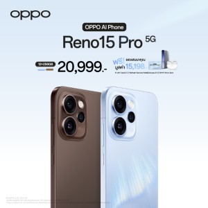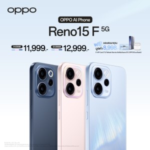 OPPO ประกาศวางจำหน่าย “OPPO Reno15 Series 5G” สมาร์ตโฟนเพื่อนซี้ เทรนดี้ทุกช็อต รุ่นใหม่ล่าสุด วางจำหน่ายในราคาสุดคุ้ม เริ่มต้นเพียง 11,999 บาท มาพร้อมโปรโมชั่นสุดพิเศษในช่วงวันนี้ - 28 กุมภาพันธ์ 2569 อีกทั้งยังมอบทุกประสบการณ์การใช้งานด้วย 2 ผลิตภัณฑ์ IoT ใหม่ อย่าง OPPO Watch S วางจำหน่ายในราคาเริ่มต้น 5,999 บาท และ OPPO Pad 5 ในราคาเริ่มต้น 13,999 บาท