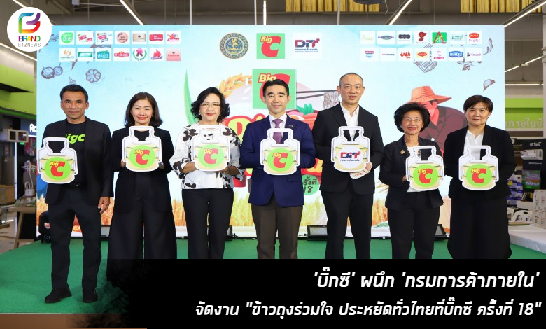 บริษัท บิ๊กซี ซูเปอร์เซ็นเตอร์ จำกัด (มหาชน) นำโดย นายอัศวิน เตชะเจริญวิกุล (กลาง) ประธานเจ้าหน้าที่บริหารและกรรมการผู้จัดการใหญ่ บริษัท บิ๊กซี ซูเปอร์เซ็นเตอร์ จำกัด (มหาชน) ร่วมกับ กรมการค้าภายใน กระทรวงพาณิชย์ โดย นายฉันทพัทธ์ ปัญจมานนท์ (ที่ 3 จากขวา) รองอธิบดีกรมการค้าภายใน กระทรวงพาณิชย์ และ แบรนด์ข้าวถุงคุณภาพชั้นนำ 20 แบรนด์ ร่วมเปิดงาน “ข้าวถุงร่วมใจ ประหยัดทั่วไทยที่บิ๊กซี ครั้งที่ 18” เพื่อสานต่อภารกิจสนับสนุนเกษตรกรไทยและดูแลค่าครองชีพของประชาชน โดยงานนี้จัดขึ้น ณ บิ๊กซี สะพานควาย เมื่อเร็ว ๆ นี้