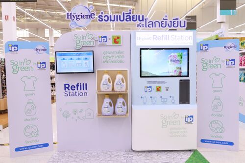 คุณชยนต์ เจตน์จิราวัฒน์ รองกรรมการผู้จัดการใหญ่ กลุ่มงานกลยุทธ์ และ Commercial กล่าวว่า “ไอ.พี. วัน ยึดมั่นในการดำเนินธุรกิจภายใต้แนวคิด “ความยั่งยืน” (Sustainability) ด้วยวิสัยทัศน์ที่ชัดเจนในการสร้างองค์กรที่มีความยั่งยืน และดำเนินการด้านความรับผิดชอบต่อสังคม และสิ่งแวดล้อมมายาวนานกว่า 33 ปี จนถึงทุกวันนี้ เริ่มต้นด้วยแบรนด์ “ไฮยีน” ถือเป็นแบรนด์ผลิตภัณฑ์ปรับผ้านุ่มรายแรกในเอเชีย ที่เปลี่ยนเป็นสูตรที่ย่อยสลายได้ในธรรมชาติ หรือ ไบโอดีเกรดเอเบิล (Biodegradable) มาตั้งแต่ปี พ.ศ. 2532 การลดขยะในขั้นตอนการผลิต และการพัฒนากระบวนการผลิต ที่ใช้พลังงานและทรัพยากรอย่างคุ้มค่า ใช้พลังงานไฟฟ้าทดแทนจากแผง Solar Roof ปัจจุบัน เราติดตั้งทั้งหมด 4 อาคาร ที่สำนักงานใหญ่ ที่โรงงานไอ.พี.บางปู 2 อาคาร และไอ.พี.เนเชอรัล โปรดักส์ ฉะเชิงเทรา 1 อาคาร จากวิสัยทัศน์ความรับผิดชอบสังคมและสิ่งแวดล้อมนี่เอง “ไอ.พี. วัน” ไม่เคยหยุดพัฒนานวัตกรรมใหม่ๆ เพื่อยกระดับอุตสาหกรรมไทยอย่างต่อเนื่อง รวมถึงพัฒนาคุณภาพชีวิตของผู้คนและโลกให้ดีขึ้น จึงได้ริเริ่มโปรเจค Hygiene Refill Station หรือ ตู้รีฟิลผลิตภัณฑ์ปรับผ้านุ่ม ไฮยีน ซึ่งได้ติดตั้งและเปิดให้บริการในพื้นที่สาธารณะเป็นครั้งแรกของประเทศไทยที่บิ๊กซี สาขาเมกา บางนา โดยมีจุดมุ่งหมายในการกระตุ้นให้กับคนไทยรู้จักการใช้ซ้ำ ตลอดระยะเวลา 1 ปีที่ผ่านมา มีผู้สนใจนำบรรจุภัณฑ์เดิมมาใช้เติมผลิตภัณฑ์ปรับผ้านุ่มรวมปริมาณทั้งสิ้นกว่า 15 ล้านมิลลิลิตร และมีส่วนสำคัญที่ทำให้การลดขยะพลาสติกได้มากกว่า 30,000 ชิ้น ซึ่งเท่ากับความสามารถในการลดก๊าซคาร์บอนไดออกไซต์ได้สูงถึง 1,500 กิโลกรัม