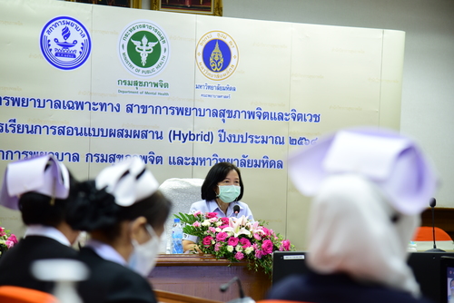 แพทย์หญิงพรรณพิมล วิปุลากร อธิบดีกรมสุขภาพจิต เป็นประธานเปิดการอบรมหลักสูตรการพยาบาลเฉพาะทาง สาขาการพยาบาลสุขภาพจิตและจิตเวช ด้วยรูปแบบการเรียนการสอนแบบผสมผสาน (Hybrid) โดยนำเทคโนโลยี การเรียนการสอนรูปแบบออนไลน์มาใช้ในการเรียนวิชาภาคทฤษฎีก่อนการฝึกภาคปฏิบัติที่หน่วยบริการจิตเวช (onsite) เพื่อพัฒนาสมรรถนะบุคลากรที่มีประสิทธิภาพ โดยเน้นให้สถานบริการสุขภาพเครือข่ายให้บริการเชิงรุก เข้าถึงประชาชนในพื้นที่เพื่อการสร้างเสริมสุขภาพจิต รวมทั้งจัดการกับปัจจัยเสี่ยงที่เป็นต้นเหตุของปัญหาสุขภาพจิตและจิตเวช