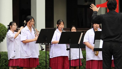 บรรยากาศแห่งความอาลัยถูกถ่ายทอด ผ่านการบรรเลงดนตรีและการขับร้องบทเพลงโดยนักเรียนของโรงเรียน ซึ่งเป็นการแสดงออกถึงความสง่างามและงดงามในกิริยามารยาท สมเป็นสตรีวัฒนาวิทยาลัย โรงเรียนหญิงล้วนแห่งแรกในไทย โดยมีการแสดงขับร้องบทเพลง “ส่งนางฟ้ากลับสวรรค์” และ “ในดวงใจนิรันดร์” จากคณะนักร้องประสานเสียง Wattana Little Angels และ Wattana Children’s Chorus ที่มีผลงานและรางวัลระดับโลกมากมาย รวมถึงความภาคภูมิใจครั้งล่าสุดกับรางวัล Golden Award จากเวที The 14th World Peace Choral Festival 2025 ณ ประเทศออสเตรเลีย สมกับความเพียรพยายามและการมีวินัยในการฝึกซ้อมที่แสดงผ่านตัวตนของคณะนักร้องประสานเสียง ได้สร้างความประทับใจแก่ผู้ร่วมพิธีเป็นอย่างยิ่ง