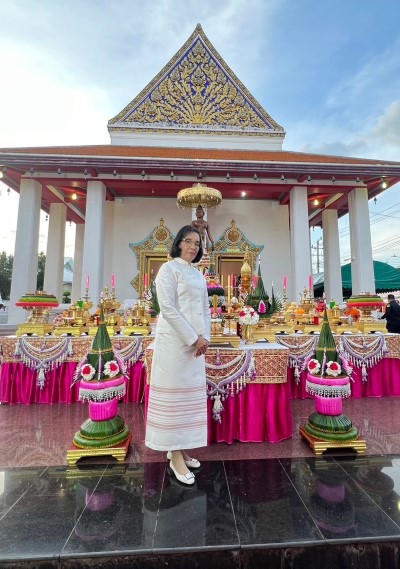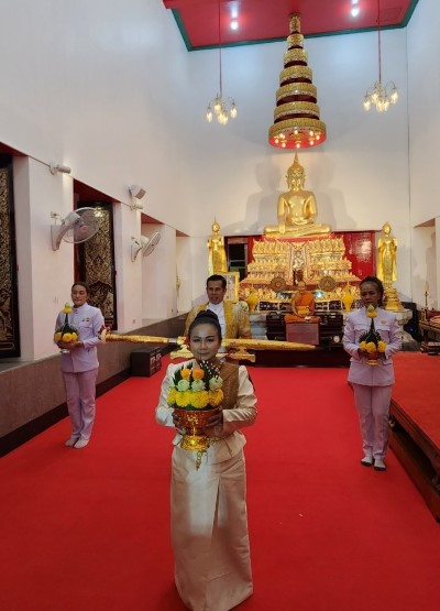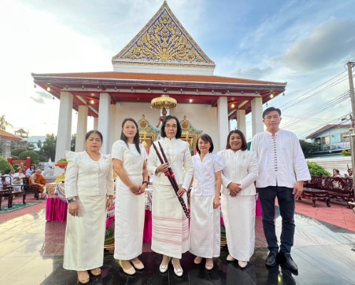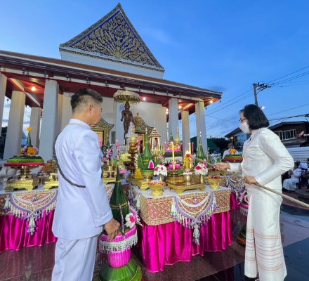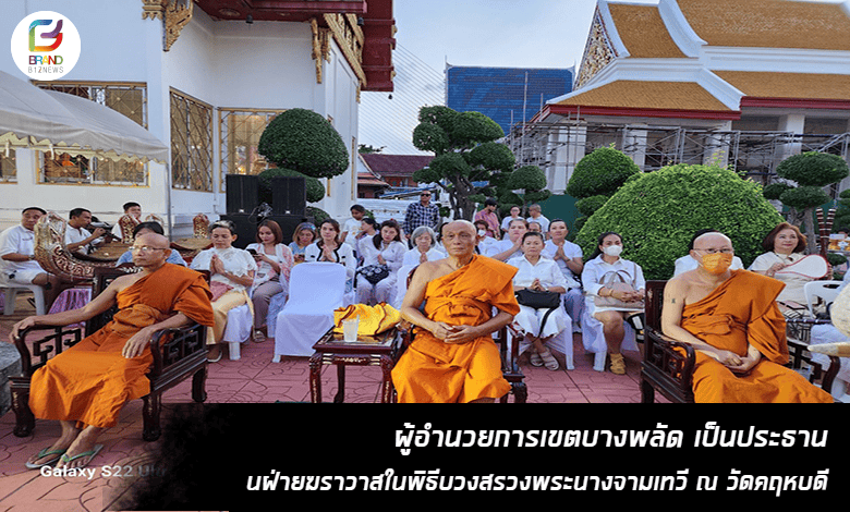 นางสาวอารียา เพ็งประเสริฐ ผู้อำนวยการเขตบางพลัด เป็นประธานฝ่ายฆราวาสในพิธีบวงสรวงพระนางจามเทวีพร้อมยกดาบถวายเพื่อความเป็นศิริมงคล และยังหมายถึงการการมีชัยชนะ ชนะอุปสรรค ชนะศัตรู ฯลฯ และกราบขอพรหลวงพ่อพระพุทธแซกคำ ณ วัดคฤหบดี พร้อมด้วยนางสาวนิภาพรรณ พานิช หัวหน้าฝ่ายทะเบียน, นางภาวิณี จันทรศรี หัวหน้าฝ่ายการศึกษา , นางสาวรัตนาภรณ์ อักษรกิตติ์ หัวหน้าฝ่ายการคลัง ร่วมพิธี โดยมี ท่านพระครูอนุกูลวีราภรณ์ (สมศักดิ์ มหาวีโร) เป็นประธานฝ่ายสงฆ์ , พระชลธี อคฺควีโร อดีตนายกสมาคมโหราศาสตร์และนักพยากรณ์ (ประเทศไทย) พร้อมด้วย ศิษยานุศิษย์สมาคมโหราศาสตร์และนักพยากรณ์ (ประเทศไทย) ร่วมในพิธี