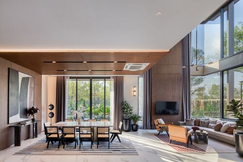 ทั้งนี้ บ้านทุกหลังออกแบบโดยยึดแนวคิดการเชื่อมต่อฟังก์ชั่นการใช้งานที่ลงตัว เพื่อให้ทุกคนมีพื้นที่สำหรับกิจกรรมส่วนตัว ในขณะเดียวกันก็มีพื้นที่เชื่อมต่อถึงกัน เพื่อให้เอื้อต่อการใช้เวลาร่วมกันของสมาชิกทุกคนในครอบครัว พื้นที่ภายในบ้านยังถูกออกแบบให้รองรับการใช้งานที่หลากหลาย และคำนึงถึงรายละเอียด สามารถปรับเปลี่ยนได้ในอนาคต เช่น ห้องนอนชั้นล่าง สามารทำเป็นห้องนอนของผู้สูงอายุ เพราะไม่มีการเล่นระดับพื้น มีขนาดของห้องน้ำเพื่อรองรับวีลแชร์ เป็นต้น นอกจากนี้ บ้านทุกแบบยังดีไซน์ให้มีเพดานสูงกว่า 3 เมตร ทั้งชั้นบนและชั้นล่าง ช่วยให้บ้านโปร่งสำหรับสุขภัณฑ์ เลือกใช้แบรนด์ชั้นนำระดับโลก อาทิ Duravit หรือ Hansgrohe and Axor ส่วนชุด Pantry เลือกใช้แบรนด์จากเยอรมนี