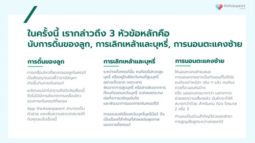 ด้านพญ. พรนิภา ศรีประเสริฐ กุมารแพทย์ ผู้พัฒนาเพจ เรื่องเด็กๆ by หมอแอม ให้ข้อมูลเกี่ยวกับการตั้งครรภ์