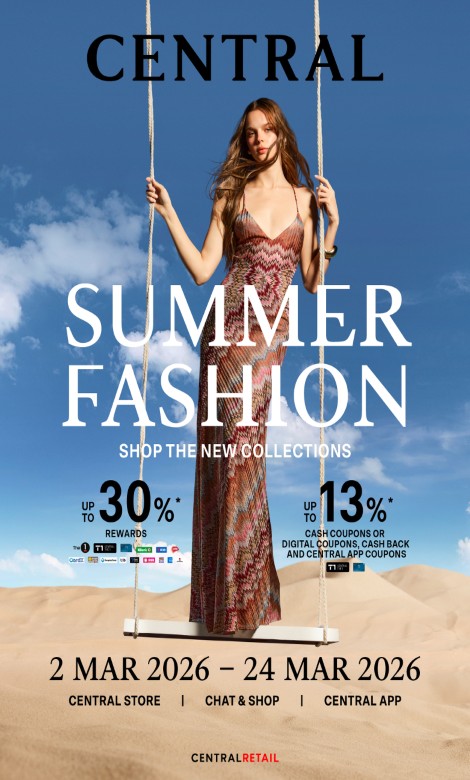 ห้างสรรพสินค้าเซ็นทรัล ในเครือเซ็นทรัล รีเทล ชวนทุกคนมาเติมสีสันรับซัมเมอร์กับ “CENTRAL SUMMER FEST” พร้อมถ่ายทอดเทรนด์ซัมเมอร์ล่าสุดในแบบ BEAT THE HEAT WITH NEW COLLECTIONS อัปเดตด้วยการคัดสรรคอลเลกชันใหม่ล่าสุดจากแบรนด์แฟชั่นและไลฟ์สไตล์ รวมถึงสินค้าอื่นๆ อีกมากมาย พร้อมข้อเสนอสุดเอ็กซ์คลูซีฟเพื่อมอบโมเมนต์แห่งความสุขและความคุ้มค่าในทุกการช้อป เตรียมสนุกไปกับการใช้ชีวิตท่ามกลางสีสันของแฟชั่นรับร้อน ตั้งแต่วันที่ 2–24 มีนาคม 2569 ที่ห้างเซ็นทรัลทุกสาขาทั่วประเทศ และทุกช่องทางการช้อป