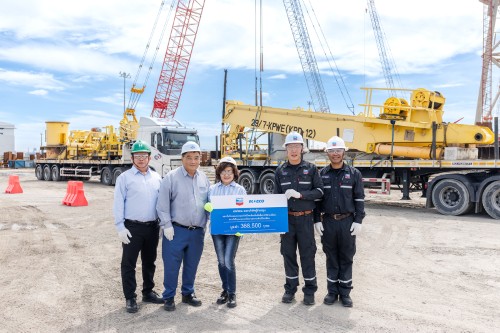 เชฟรอนและบริษัทผู้ร่วมทุน ส่งมอบปั้นจั่นของแท่นหลุมผลิตปิโตรเลียมแก่สถาบันฝึกอบรมและพัฒนาบุคลากรด้านปิโตรเลียม สำหรับใช้สนับสนุนการฝึกอบรมบุคลากรด้านปิโตรเลียม