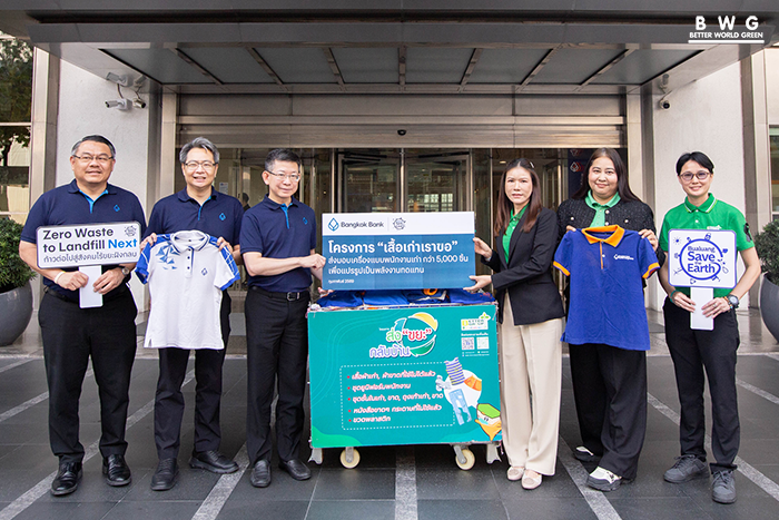 บริษัท เบตเตอร์ เวิลด์ กรีน จำกัด (มหาชน) (BWG) ร่วมกับ ธนาคารกรุงเทพ จำกัด (มหาชน) ขับเคลื่อนโครงการ “ส่งขยะกลับบ้าน” รับมอบเสื้อผ้าและชุดยูนิฟอร์