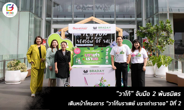 คุณประณต เวสารัชวิทย์ (ที่ 2 จากขวา) กรรมการบริหารสายงานการตลาดและขาย Wacoal และคุณอินทิรา นาคสกุล (ที่ 1 จากขวา) ผู้อำนวยการฝ่ายการตลาด บริษัท ไทยวาโก้ จำกัด (มหาชน) ร่วมกับคณะผู้บริหาร ศูนย์การค้าและโครงการในเครือ บริษัท แอสเสท เวิรด์ คอร์ป จำกัด (มหาชน) หรือ AWC นำโดย คุณจารุวัลย์ วงศ์เจษฎาสกุล (ที่ 3 จากซ้าย) หัวหน้าฝ่ายปฏิบัติการรีเทล คุณอรศิริ อนันตมงคลชัย (ที่ 2 จากซ้าย) หัวหน้าสายงานการวางกลยุทธ์แบรนด์และการตลาด และ คุณเอกกฤตา แก้วพูลศรี (ที่ 1 จากซ้าย) ผู้อำนวยการ ศูนย์การค้าเกทเวย์ แอท บางซื่อ ร่วมเปิดกิจกรรมภารกิจรักษ์โลก กับโครงการ “วาโก้บราเดย์ บราเก่าเราขอ” ต่อเนื่องเป็นปีที่ 2 โดยขอเชิญชวนทุกท่านบริจาคชุดชั้นในเก่า ทั้งหญิงและชายทุกแบรนด์ที่ไม่ใช้แล้ว เพื่อนำไปทำลายอย่างถูกวิธี และแปรเปลี่ยนเป็นพลังงานไฟฟ้า เพื่อสร้างประโยชน์ต่อไป โดยโครงการฯ นี้ช่วยลดปริมาณขยะชุมชน อีกทั้งยังช่วยลดปริมาณก๊าซคาร์บอนไดออกไซด์และปริมาณฝุ่น PM 2.5 ได้อีกทางหนึ่งด้วย