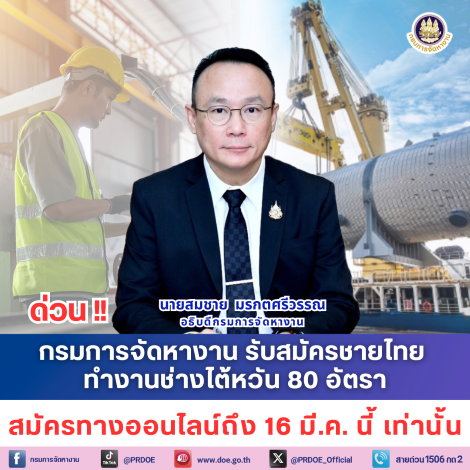 ทั้งนี้ ผู้ที่มีความสนใจสามารถศึกษารายละเอียดการรับสมัครได้ที่เว็บไซต์ doe.go.th/overseas หรือ เพจเฟซบุ๊ก : แรงงานไทยไปต่างประเทศโดยรัฐจัดส่ง และสามารถสอบถามรายละเอียดเพิ่มเติมได้ที่ สำนักงานจัดหางานจังหวัด สำนักงานจัดหางานกรุงเทพมหานครพื้นที่ 1 - 10 หรือกองบริหารแรงงานไทยไปต่างประเทศ หมายเลขโทรศัพท์ 0 2245 1034 หรือ สายด่วนกระทรวงแรงงาน โทร. 1506 กด 2 กรมการจัดหางาน