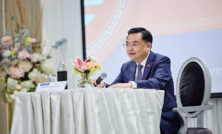 “แผนพัฒนาในอีก 5 ปีข้างหน้าของจีน มีความสอดคล้องอย่างยิ่งกับยุทธศาสตร์การพัฒนาของประเทศไทย และจะนำมาซึ่งโอกาสใหม่ ๆ สำหรับความร่วมมือจีน–ไทย ทั้งในด้านการค้า การลงทุน และการพัฒนาอุตสาหกรรม ในมุมของความสัมพันธ์ทวิภาคี จีนมองประเทศไทยไม่เพียงในฐานะหุ้นส่วนทางเศรษฐกิจ แต่เป็นพันธมิตรเชิงยุทธศาสตร์ในภูมิภาค จีนและไทยเป็นมิตรประเทศที่มีความสัมพันธ์แน่นแฟ้นยาวนาน จีนพร้อมแบ่งปันโอกาสการพัฒนา และยินดีทำงานร่วมกับไทยในการเสริมสร้างเสถียรภาพของห่วงโซ่อุตสาหกรรมและห่วงโซ่อุปทาน เพื่อสร้างการเติบโตที่สมดุลและยั่งยืนให้กับภูมิภาค” เอกอัครราชทูต จาง เจี้ยนเว่ย กล่าว