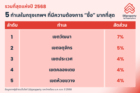 สำหรับ 5 ทำเลที่มีความต้องการซื้อมากที่สุดในรอบปี 2568 ได้แก่