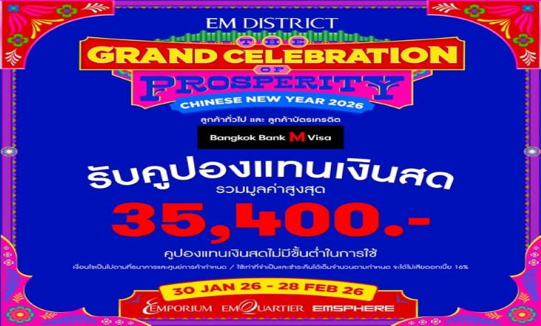 เอ็ม ดิสทริค (ศูนย์การค้าเอ็มโพเรียม เอ็มควอเทียร์ และเอ็มสเฟียร์) ร่วมกับพันธมิตรธุรกิจชั้นนำ อาทิ บัตรเครดิต Bangkok Bank M Visa, BOWINS SILVER, Iceland Spring, LocknLock และ Ninest จัดแคมเปญอภิมหาโปรโมชัน “EM DISTRICT: THE GRAND CELEBRATION OF PROSPERITY CHINESE NEW YEAR 2026” ระหว่างวันที่ 30 ม.ค. 69 – 28 ก.พ. 69 ต้อนรับเทศกาลตรุษจีนปีมะเมีย มอบประสบการณ์การช้อปปิ้งควบคู่ความมั่งคั่งและ