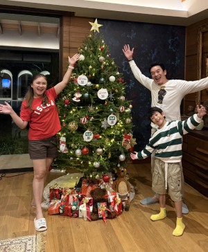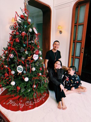 อีกหนึ่งหลังที่ตกแต่งบ้านแบบจัดเต็มไม่แพ้กัน คือบ้านของคุณแม่คนเก่งและแฟชั่นนิสต้า โอบอุ้ม–ชุมสาย ณ อยุธยา ได้เล่าว่า “ทุกปีจะตั้งใจเลือกต้นคริสต์มาสกับลูก ๆ เอง เพราะนอกจากเรื่องความสวยงามแล้ว สิ่งสำคัญคือความปลอดภัยของครอบครัว ต้นสนสดของไทวัสดุและบีเอ็นบี โฮม มีเอกลักษณ์พิเศษตรงที่มีกลิ่นหอมธรรมชาติ ปลูกแบบออร์แกนิก ไร้สารเคมี ไม่ทำลายป่า หลังใช้งานสามารถย่อยสลายได้ 100% รู้สึกดีทั้งต่อใจและต่อโลก และที่สำคัญทุกการสั่งซื้อต้นสนสดจากไทวัสดุและบีเอ็นบี โฮม ยังร่วมสมทบทุน ต้นละ 50 บาท ให้แก่มูลนิธิช่วยคนตาบอดแห่งประเทศไทย ในพระบรมราชินูปถัมภ์ ซึ่งถือเป็นของขวัญที่ไม่ใช่แค่ให้กับครอบครัวเรา แต่ยังส่งต่อโอกาสให้กับคนอื่นด้วย”